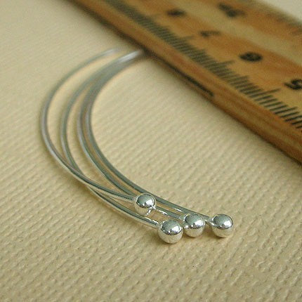 I made these ear wires using 20 gauge Argentium, They measure 2 inches in length. One side has a ball end approx. 2.5mm in size to keep the beads you slip on from falling off. The ends have been carefully filed and sanded smooth, to remove any rough edges.