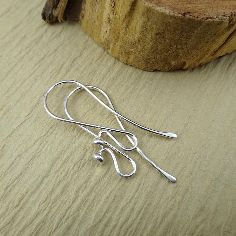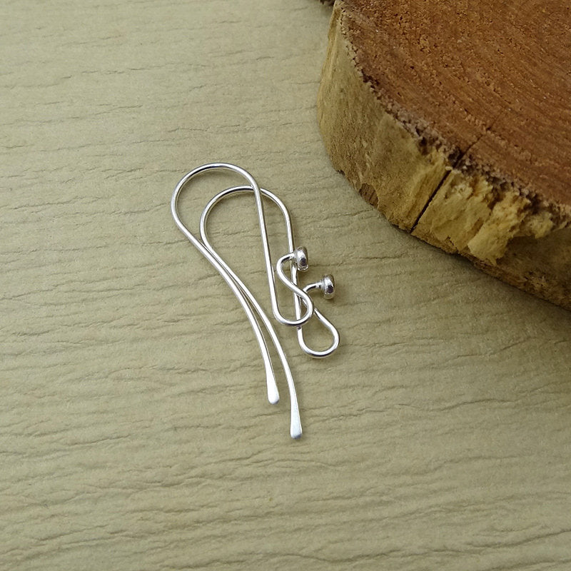 I made these unique french ear wires using 20 gauge Argentium wire. The ends were balled and then hammered flat to resemble a nail. The ends have also been hammered to give them a flared look then sanded and smoothed for a nice comfortable fit. Lastly, they are polished to a beautiful shine!