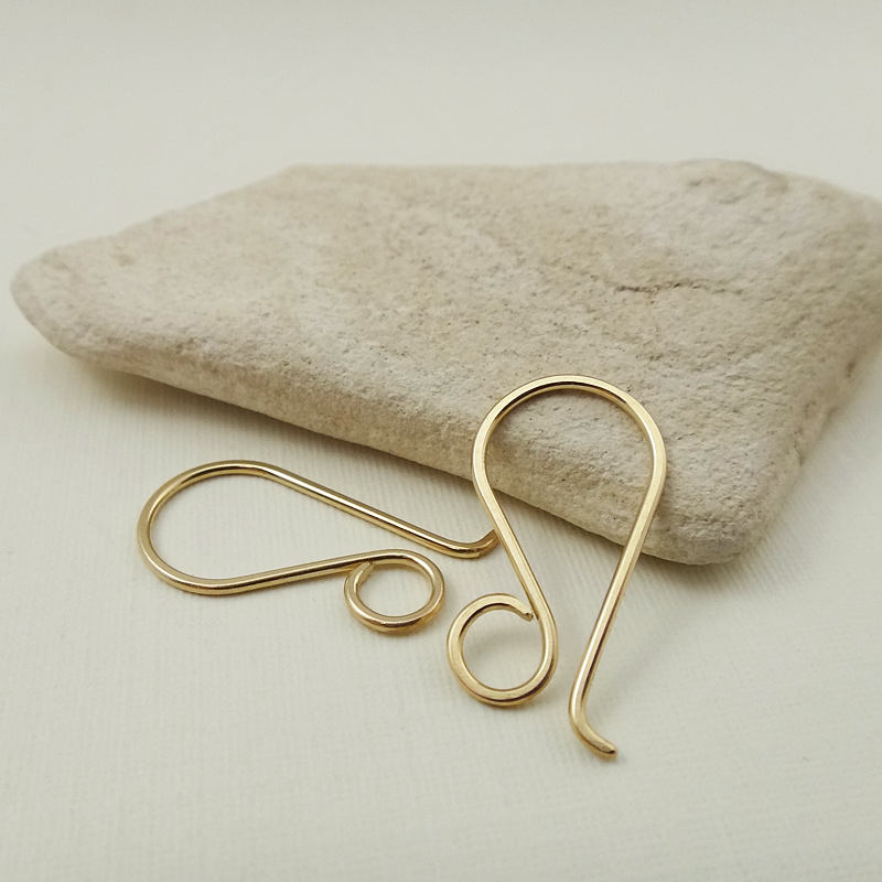 I made these large loop earring wires using 20 gauge 14/20 gold filled wire. They have been hammered flat, and the ends have also been rounded and smoothed for a nice comfortable fit.