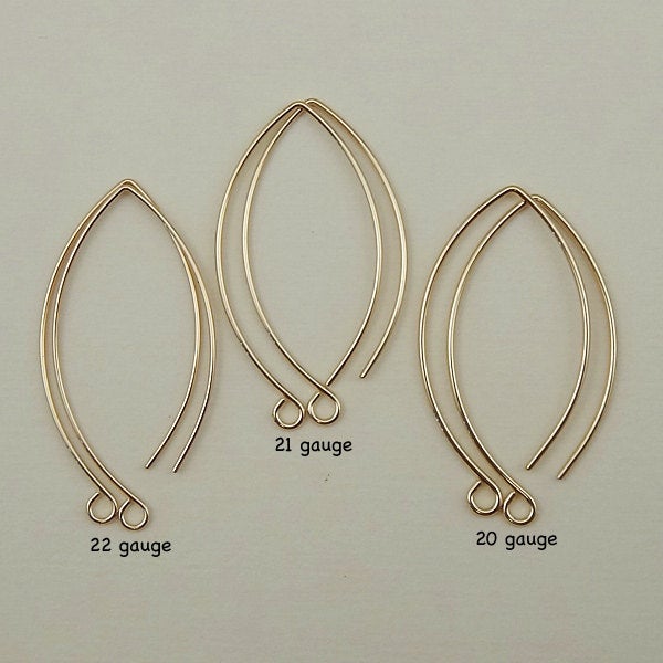 I made these long leaf ear wires using 14/20 gold filled wire. The ends have also been rounded and smoothed for a nice comfortable fit. These are available in various wire gauges including 22 gauge, 21 gauge or 20 gauge. You choose!