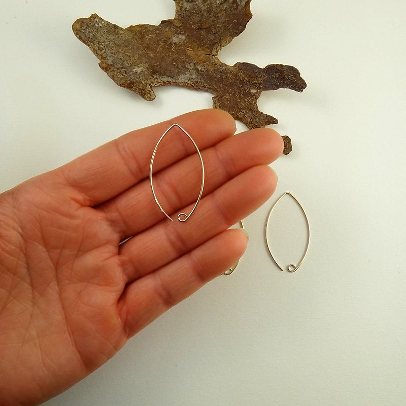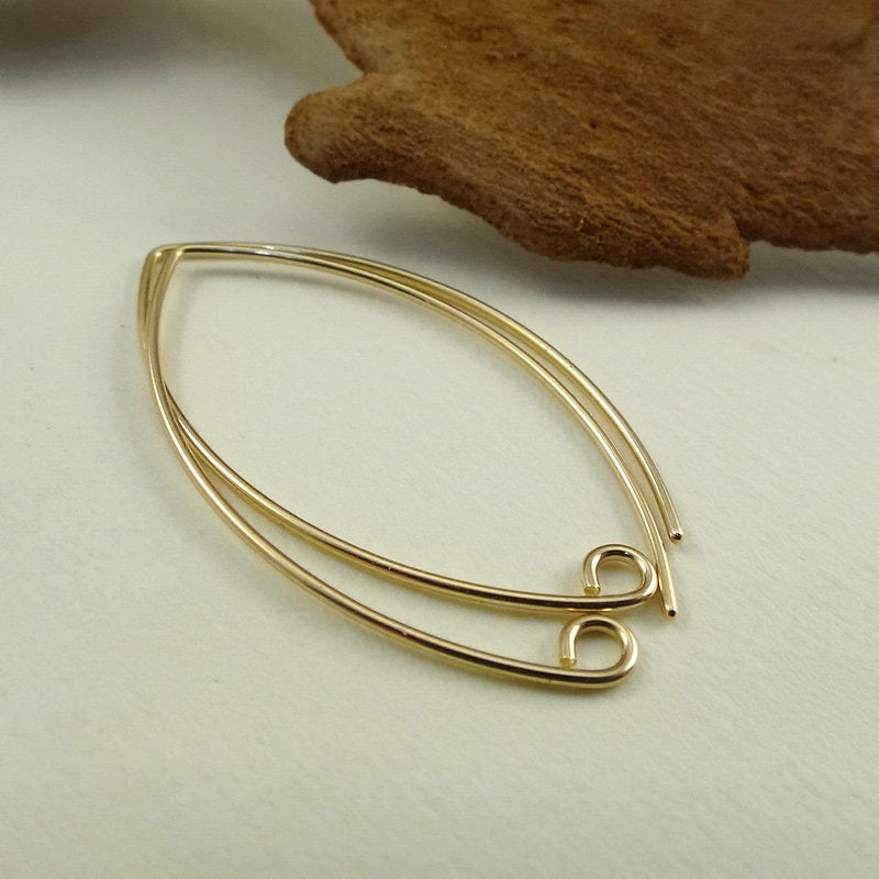I made these large marquise shape ear hooks using 14/20 gold filled wire. The ends have been rounded and smoothed for a nice comfortable fit. These are available in two wire gauges, 21 gauge or 20 gauge. Your choice!