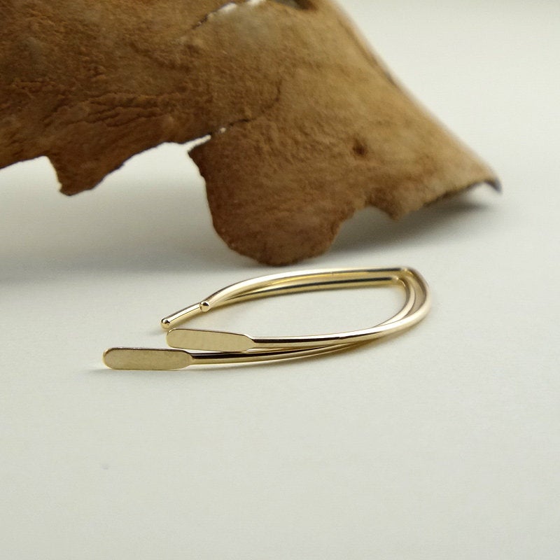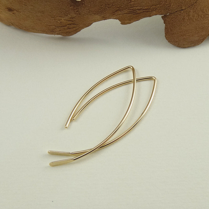 I made these hammered earring hooks using 14/20 gold filled wire. The front has a hammered end resembling a paddle and the ends have been rounded and smoothed for a nice comfortable fit.