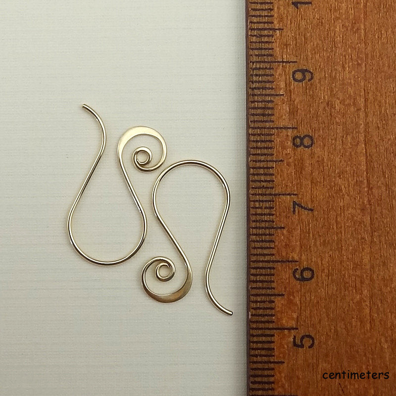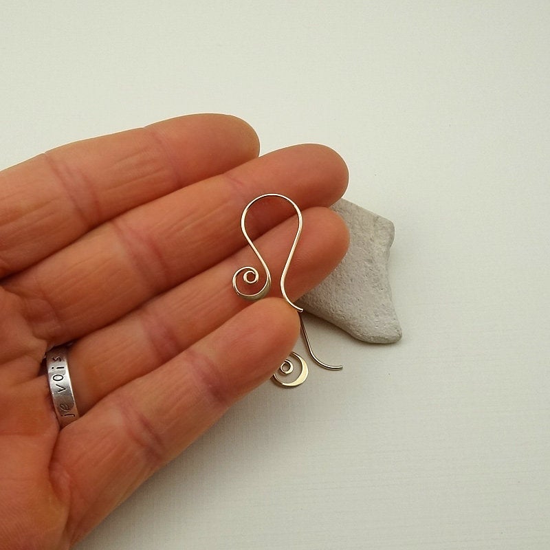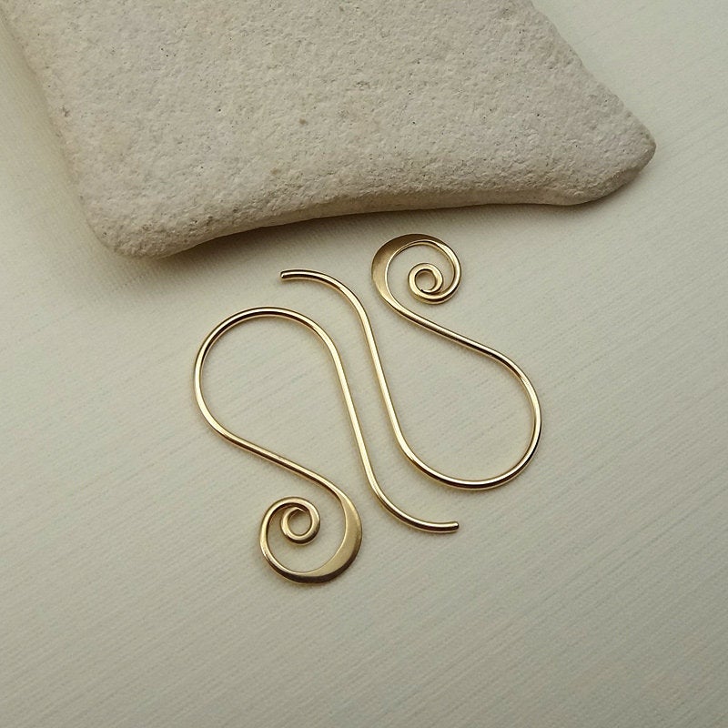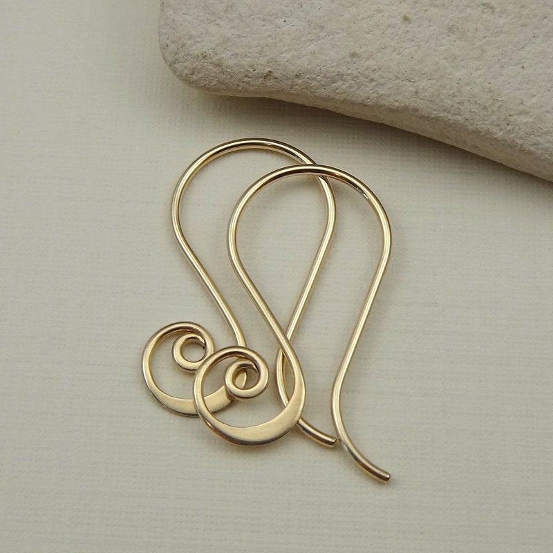 I made these spiral earring hooks using 20 gauge 14/20 gold filled wire. I hand formed the ear wires and then gradually hammered the bottoms of the spirals to make them flare. The ends have been rounded and smoothed for a nice fit. The ear wires were then sanded (to remove any tool marks) and tumbled for extra strength. These are great to use as interchangeable ear wires as well.