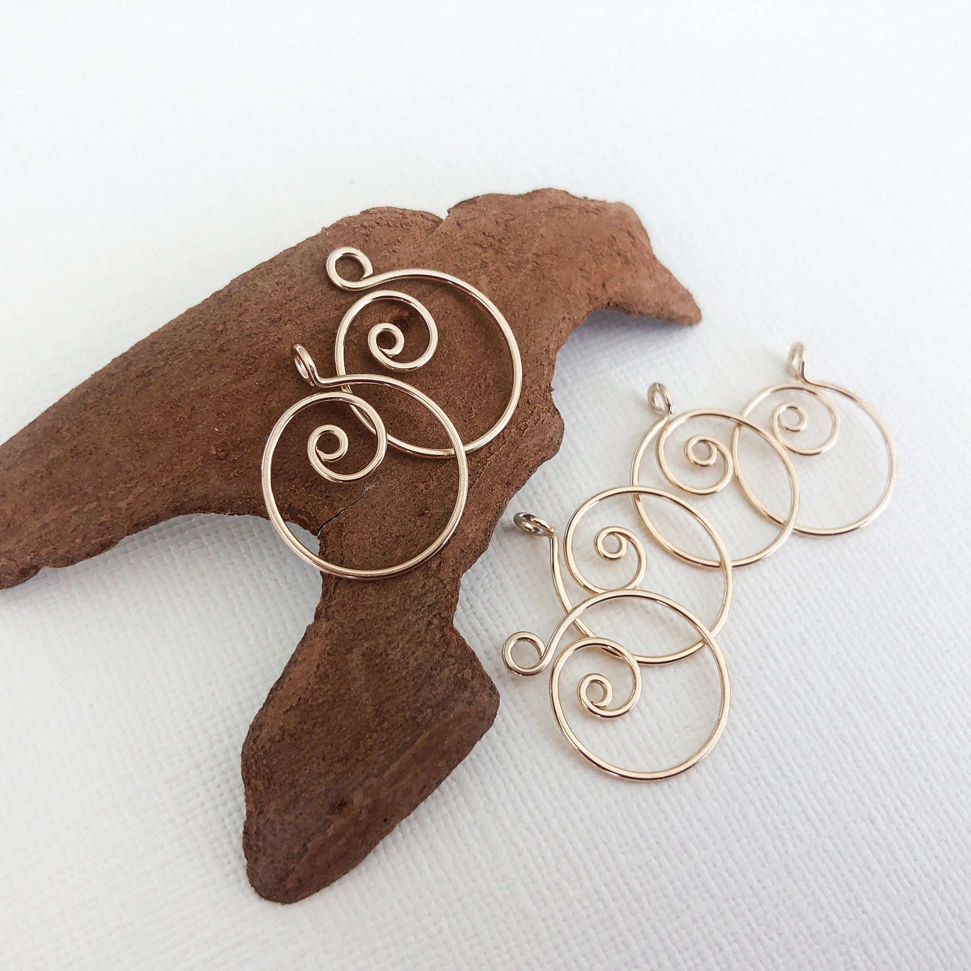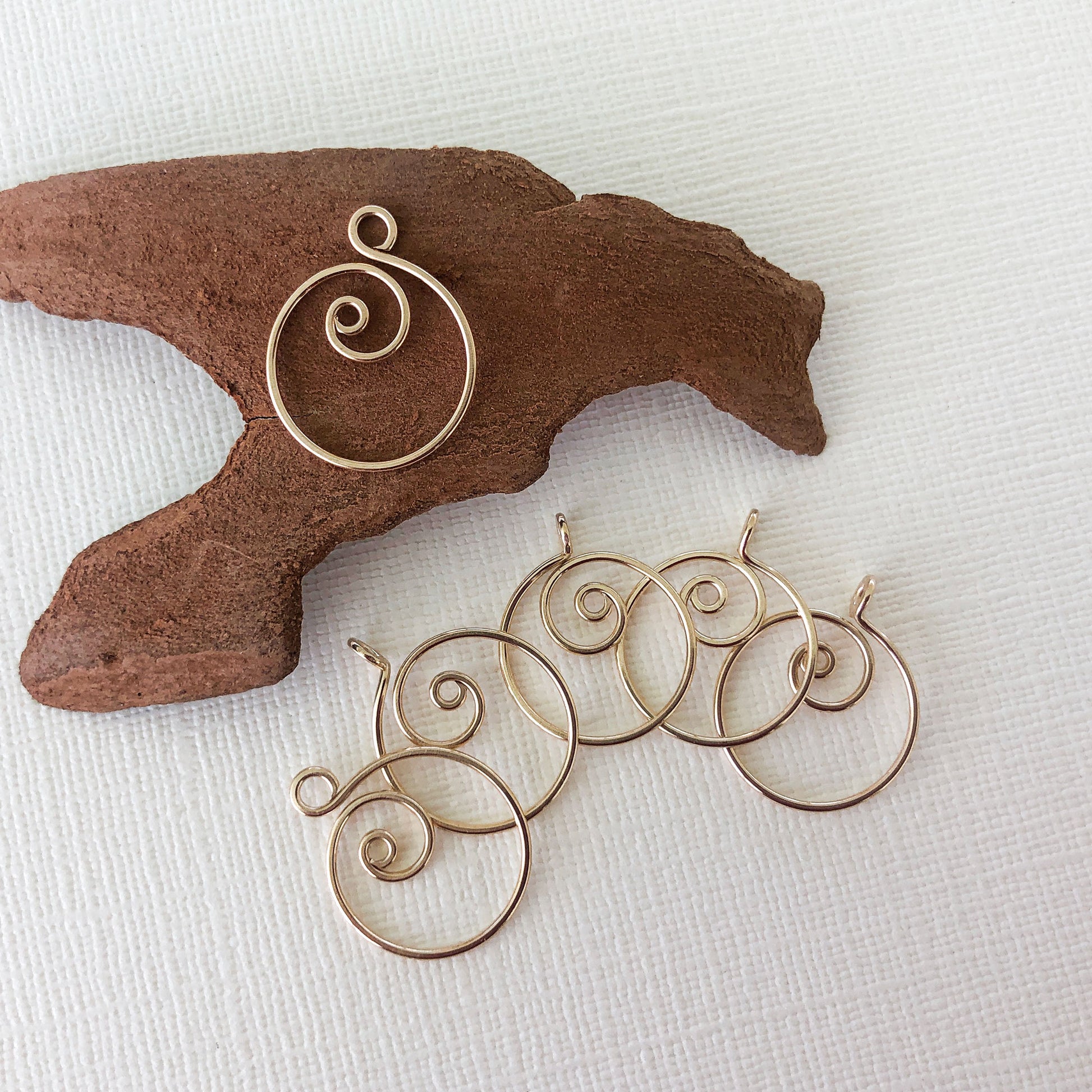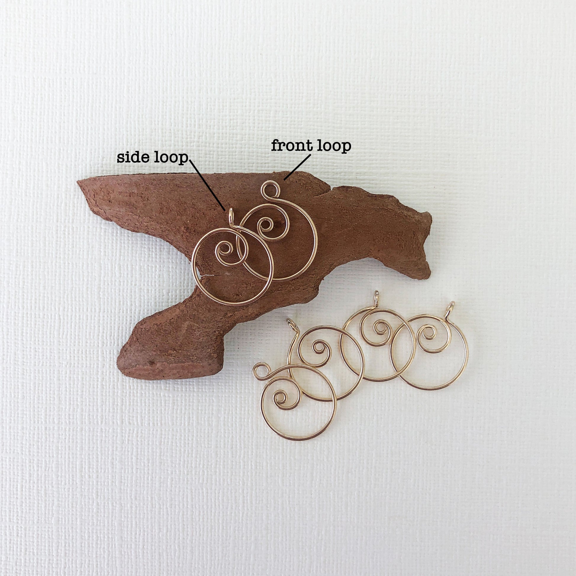 This spiral connector is handmade using 14/20 gold filled wire. I hand form the spiral and shape the rest into a circle. The top loop can be custom bent facing the front or the side. Whichever style suits your needs best! You choose. I then hammer the spiral hoop flat and tumble it for a few hours to give it more strength and shine