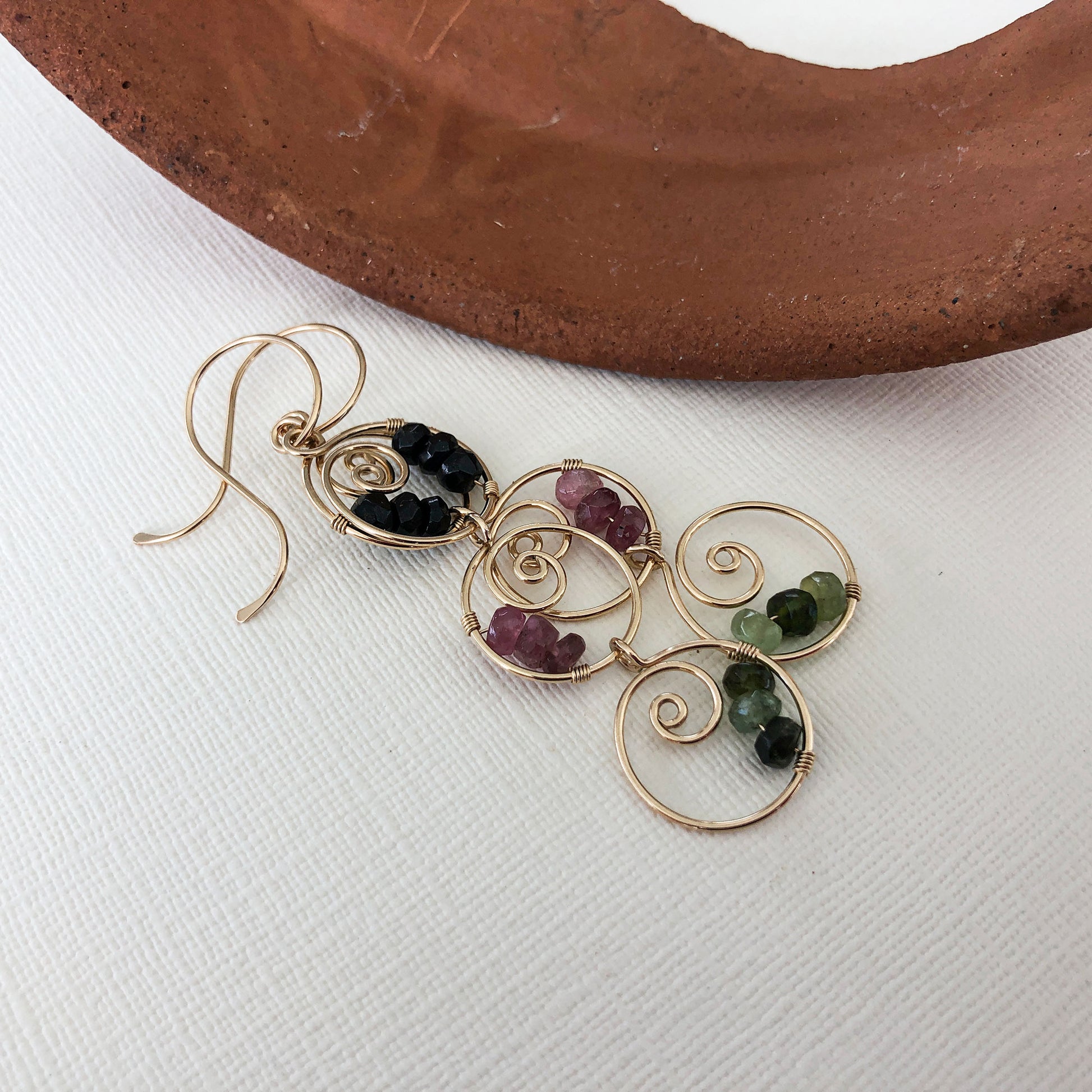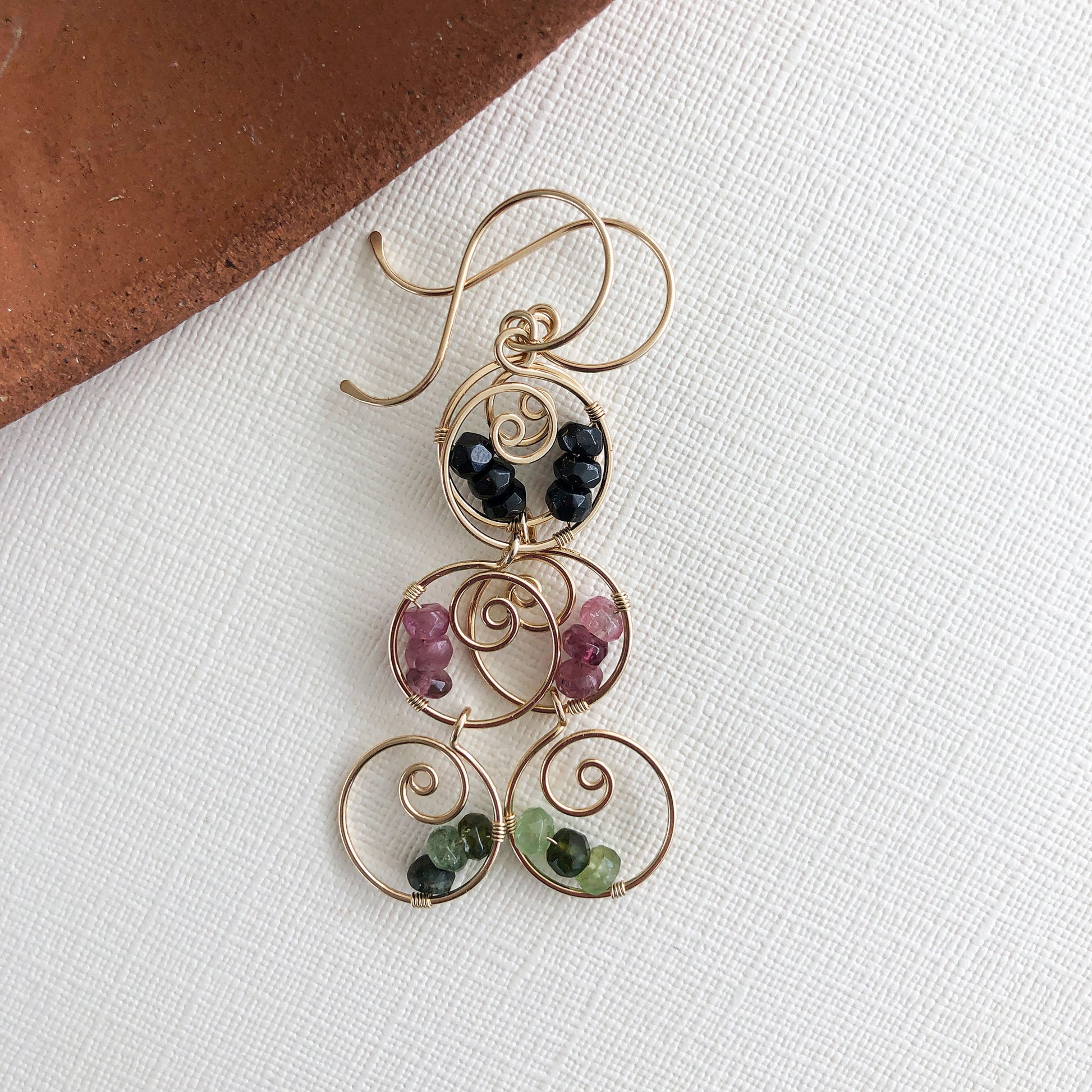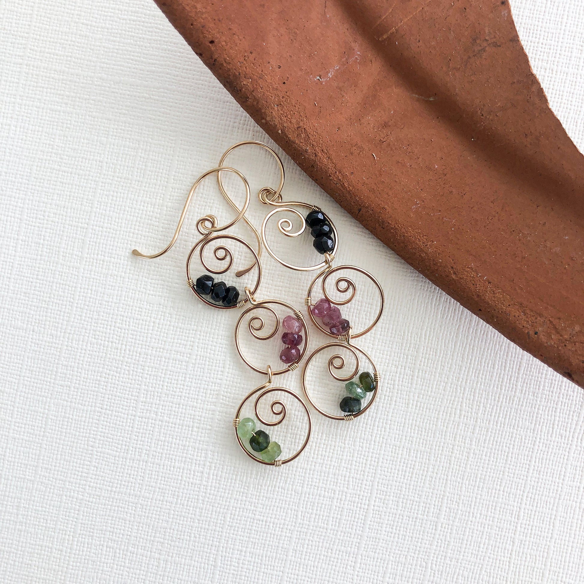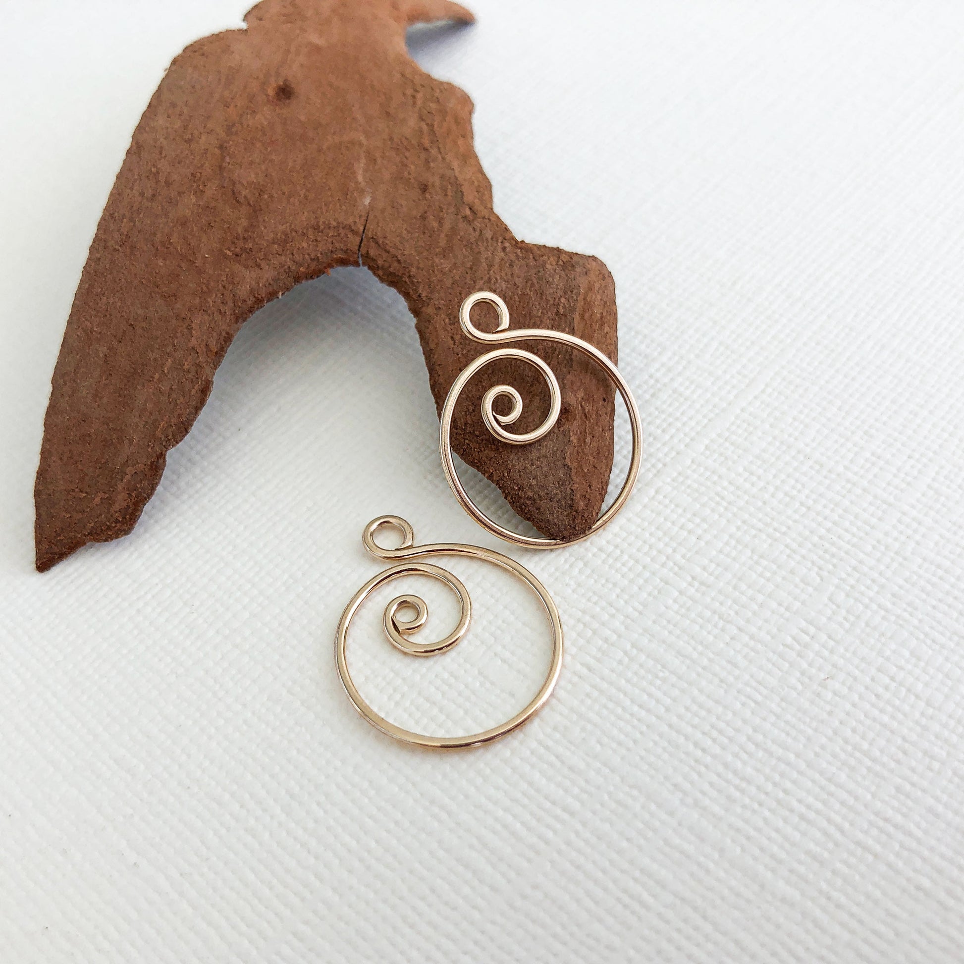 This spiral connector is handmade using 14/20 gold filled wire. I hand form the spiral and shape the rest into a circle. The top loop can be custom bent facing the front or the side. Whichever style suits your needs best! You choose. I then hammer the spiral hoop flat and tumble it for a few hours to give it more strength and shine