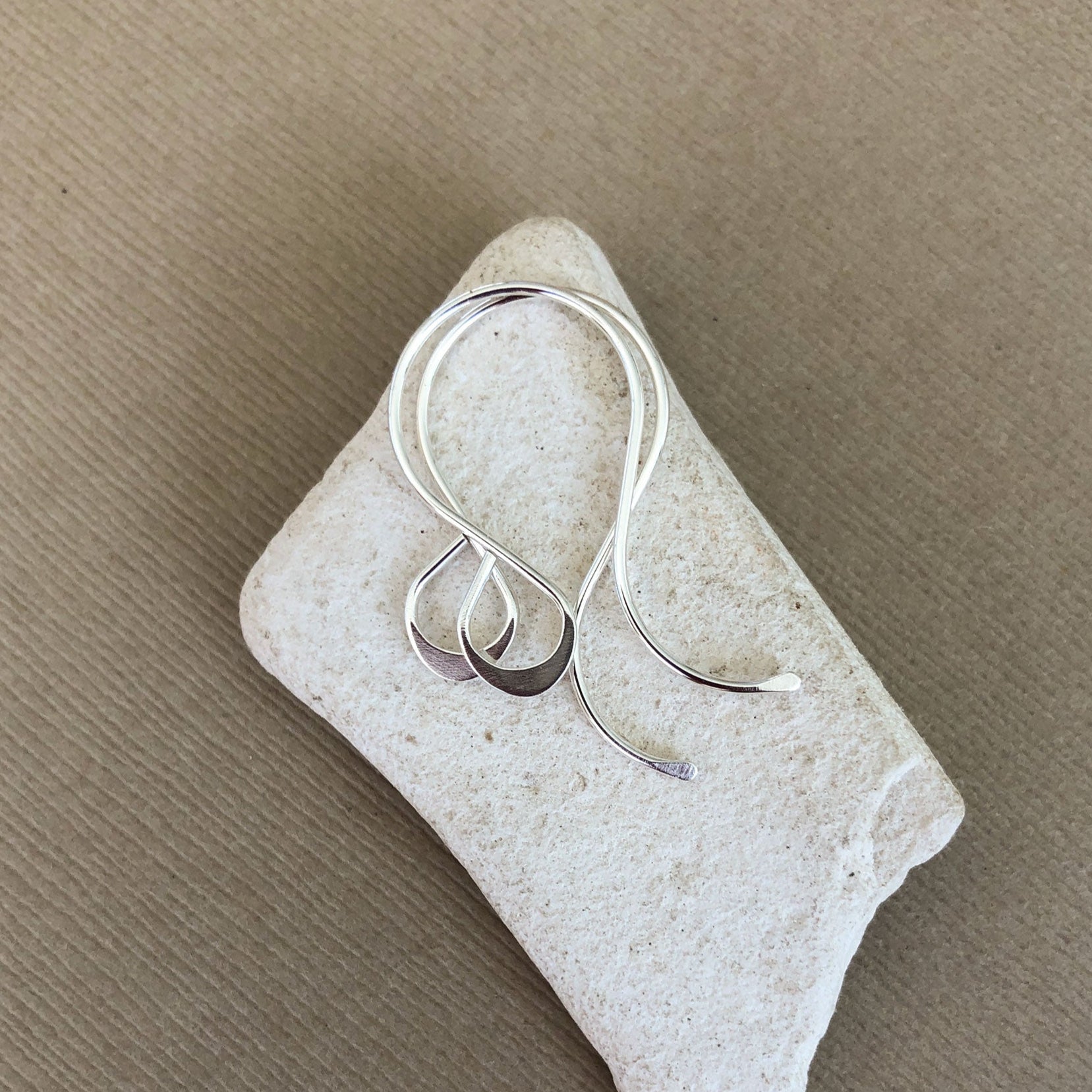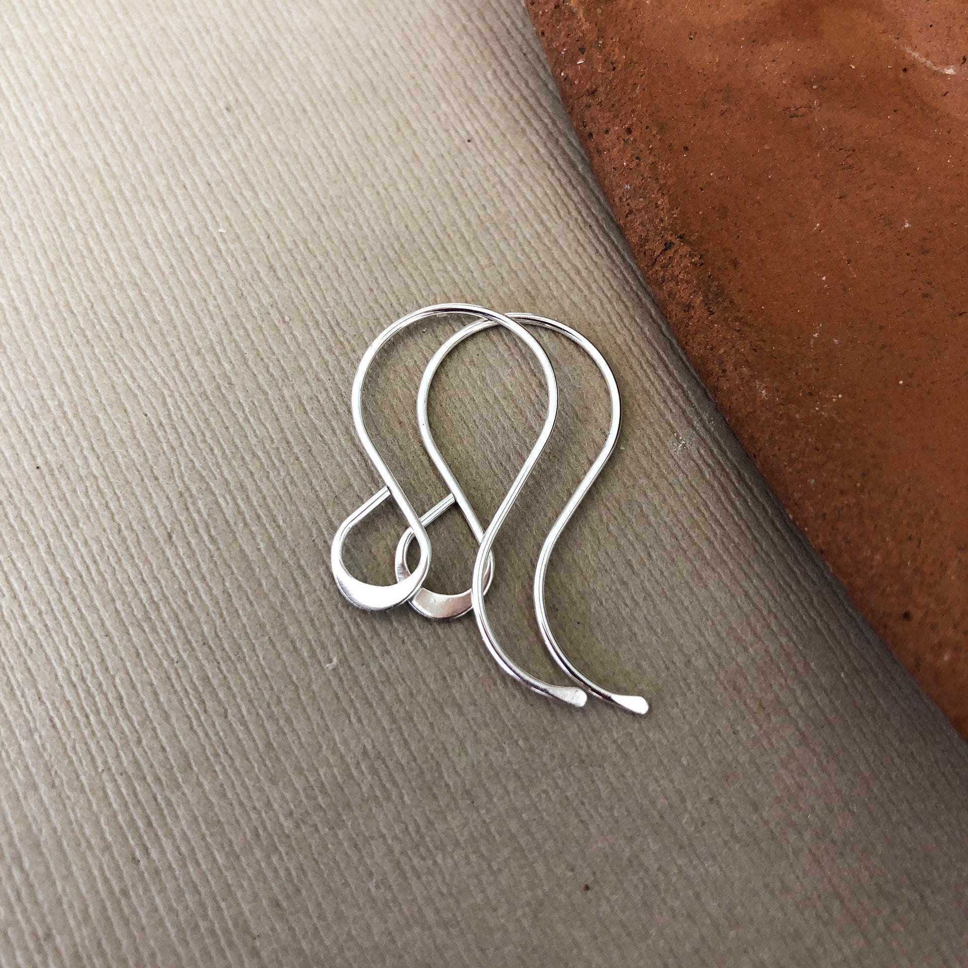 I made these fancy teardrop earring hooks using 20 gauge .925 sterling silver wire. I hand formed the ear wires and then gradually hammered and flared the ends and bottom of the teardrop loops to make them more interesting. They are then sanded and tumbled for extra strength.