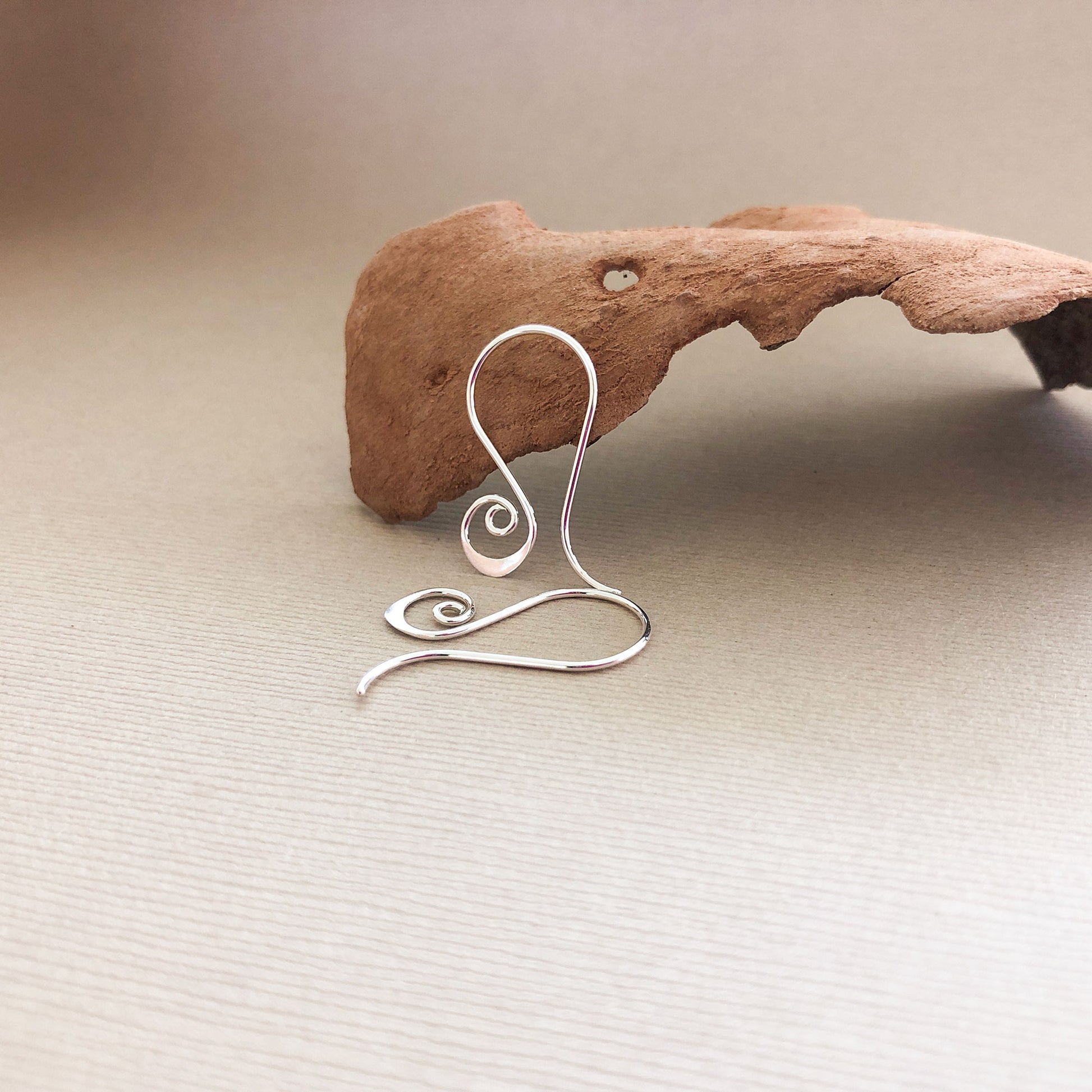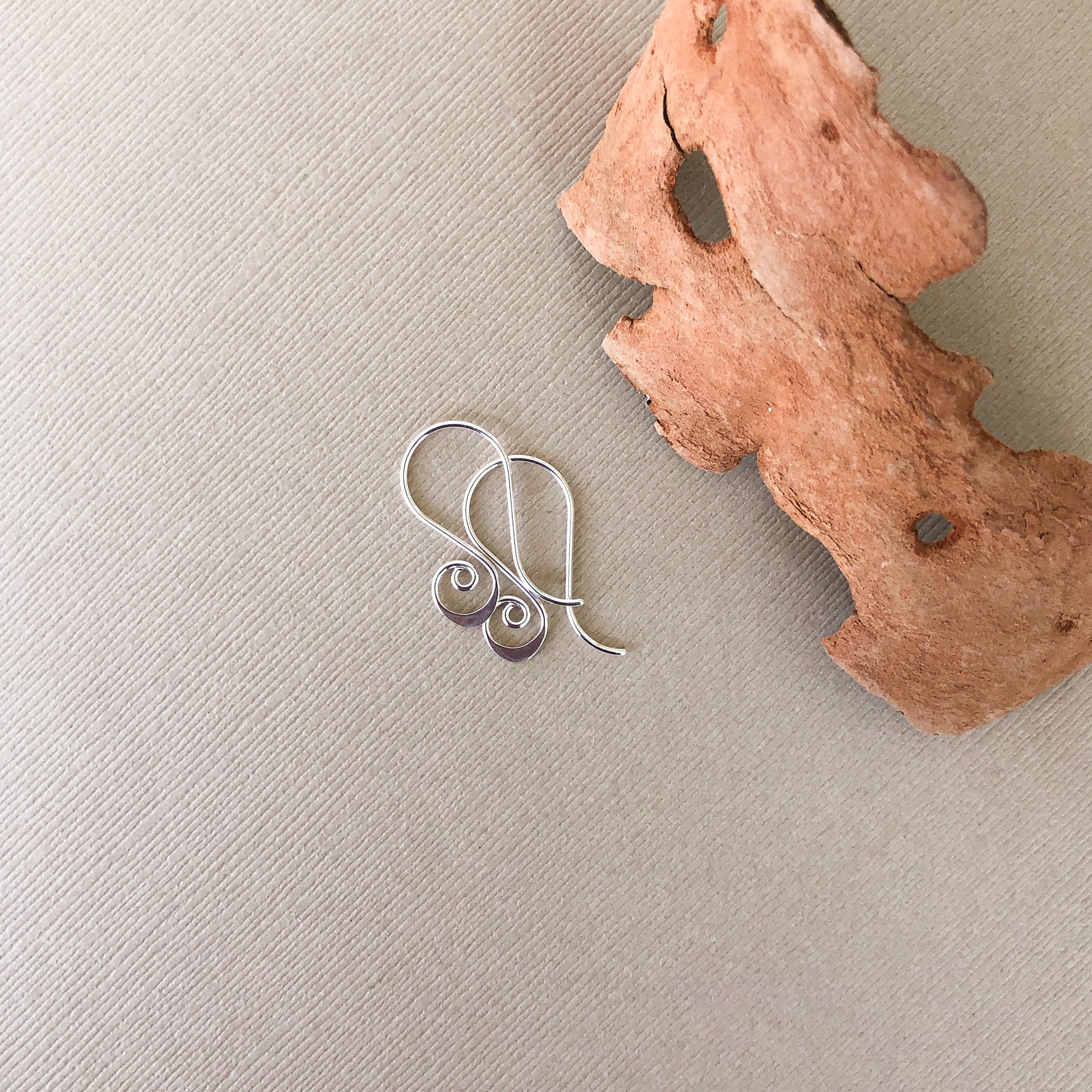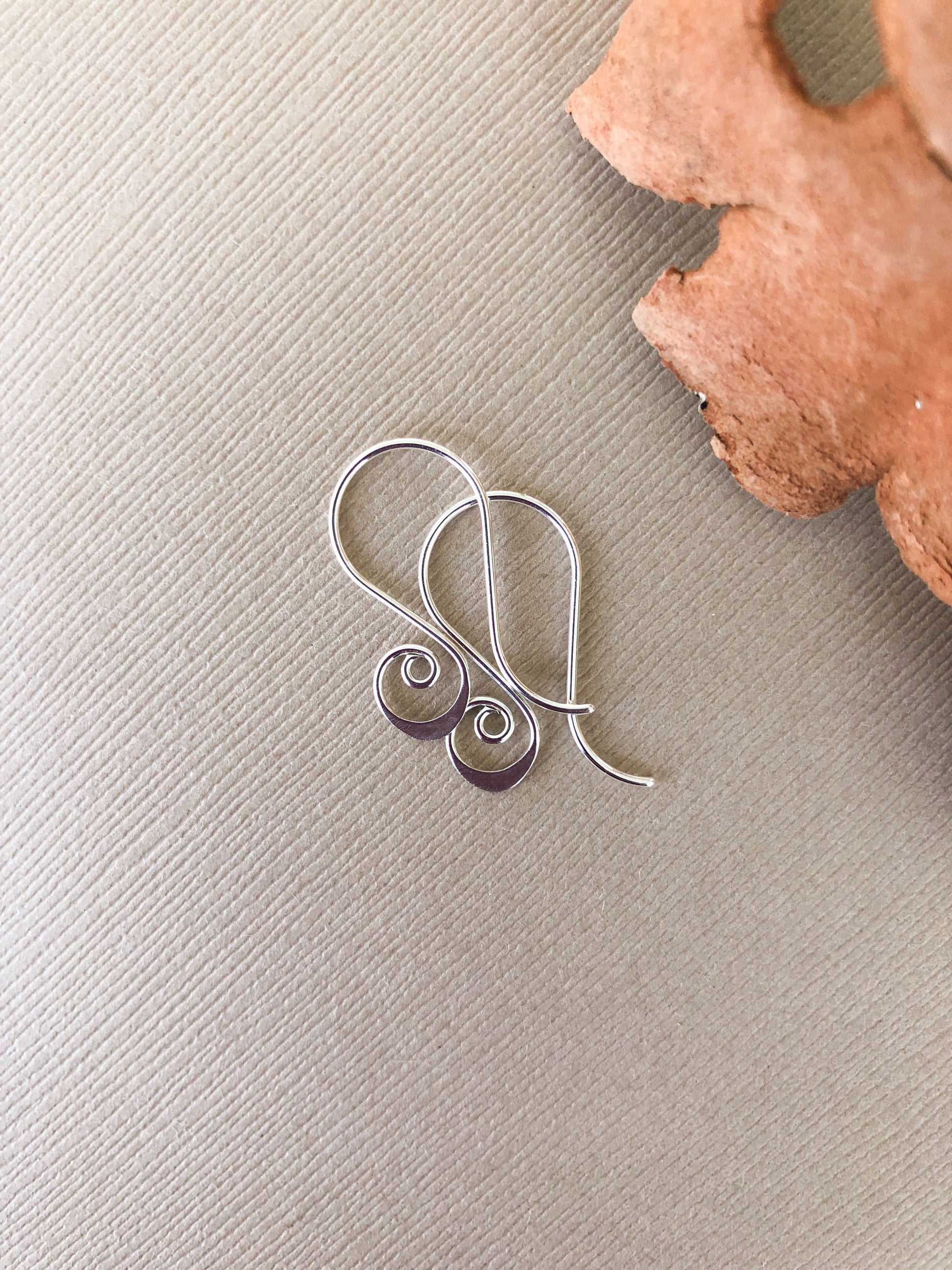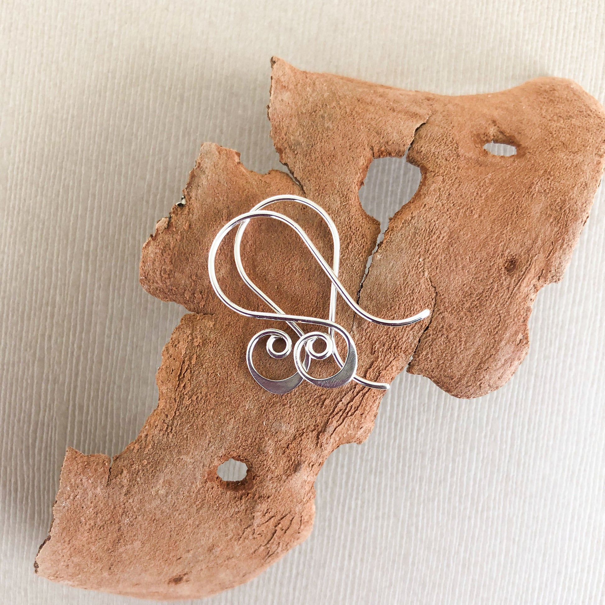 I made these spiral earring hooks using 20 gauge .925 sterling silver wire. I hand formed the ear wires and then gradually hammered the bottoms of the spirals to make them more interesting. The ends have been rounded and smoothed for a nice fit. The ear wires were then sanded (to remove any tool marks) and tumbled for extra strength. These are great to use as interchangeable ear wires as well.